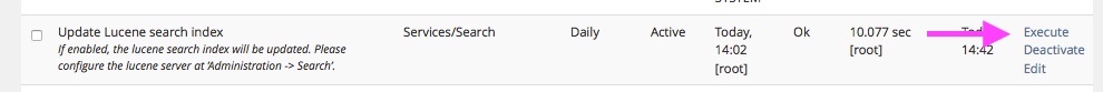 - Go to Adminstration->General Settings->Crone Jobs and update the Lucene search index: