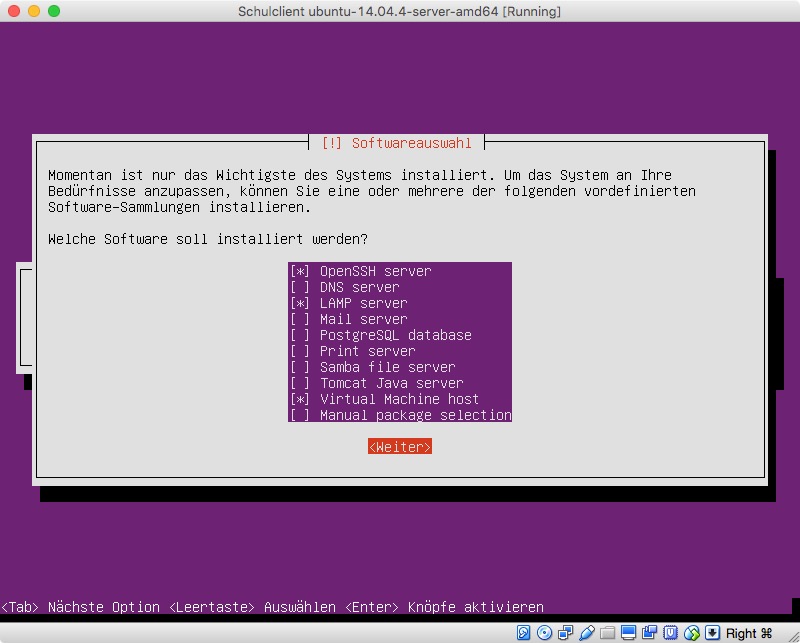 Die installierte Software wurde wie folgt gewählt: