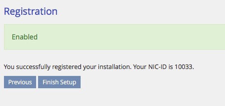 Die dann folgende Installation der Sprache sollte selbsterklärend sein. Ebenso wie die folgende Maske. Wir registrieren den Client, da wir eine NIC-ID benötigen. Dann klicken wir auf "Finished" und können uns einloggen unter 192.168.2.32/ilias