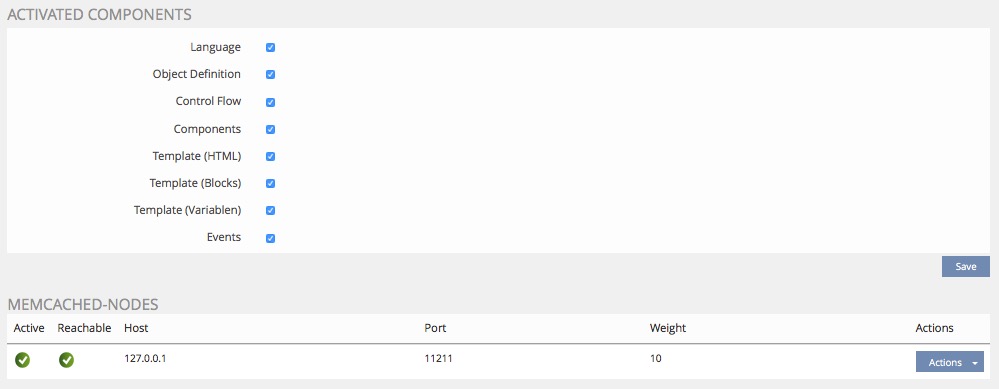 Nach dem Speichern der Einstellung mit "Add Memcache Node" wählen wir noch die Komponenten auf der Folgeseite aus: